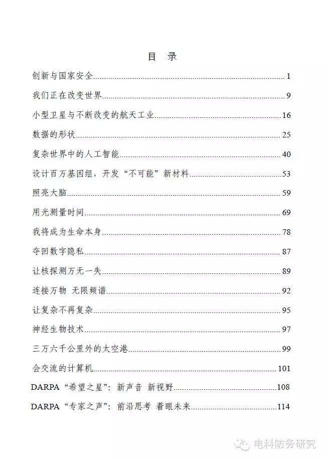 《为了未来的未来——DARPA未来技术论坛文集》目录